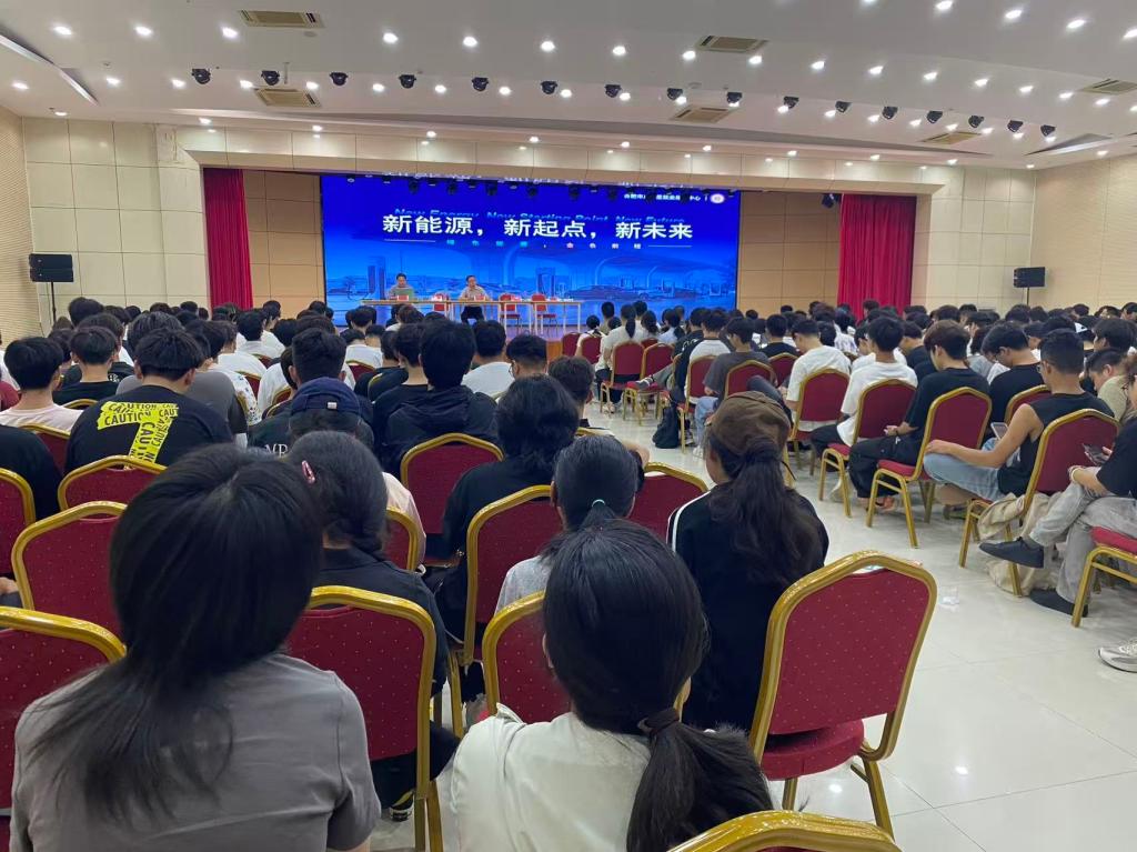 安徽达才教育科技有限公司总经理徐玄颖为2025级电气自动化技术、工业机器人技术专业员工带来了新能源产业介绍的讲座。徐玄颖结合自身丰富的行业经验,从新能源产业的发展现状、趋势以及对专业人才的需求等方面进行了深入剖析,让电气自动化技术专业的新生们对自己专业的应用领域和发展前景有了更直观、更深刻的认识,进一步激发了同学们的专业学习兴趣。