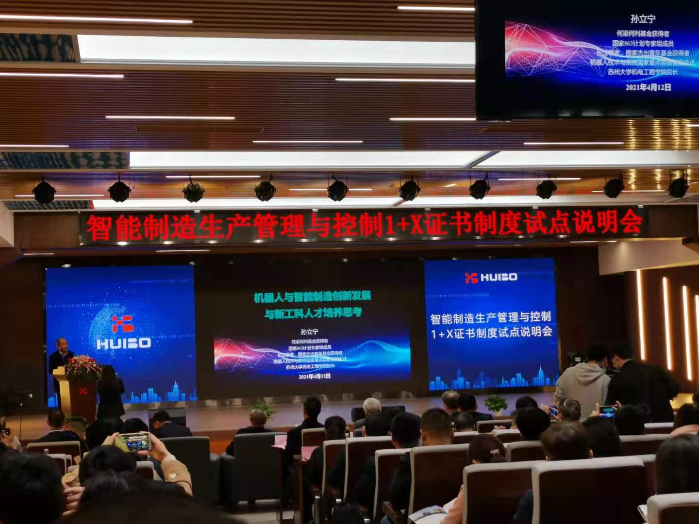 4月12日,智电bwin官网院长刘国华与马艳梅、蒋军两位老师一起赴苏州参加江苏汇博机器人技术股份有限公司举办的教育部第四批“1+X”智能制造生产管理与控制证书试点说明会,并参观了汇博公司在智能制造领域的实验实训产品。【撰稿:蒋军 摄影:蒋军 审核:刘国华】