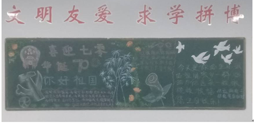 各班在团支书和宣传委员的策划下,一幅幅主题鲜明的黑板报顺利出炉。内容充实有吸引力,图文并茂,色彩搭配和谐自然,体现了个性化和创意,版面设计新颖独特、有风格,展现了师生积极向上的精神文明风貌,营造了浓郁的校园文化氛围,表达了对祖国的热爱之情。