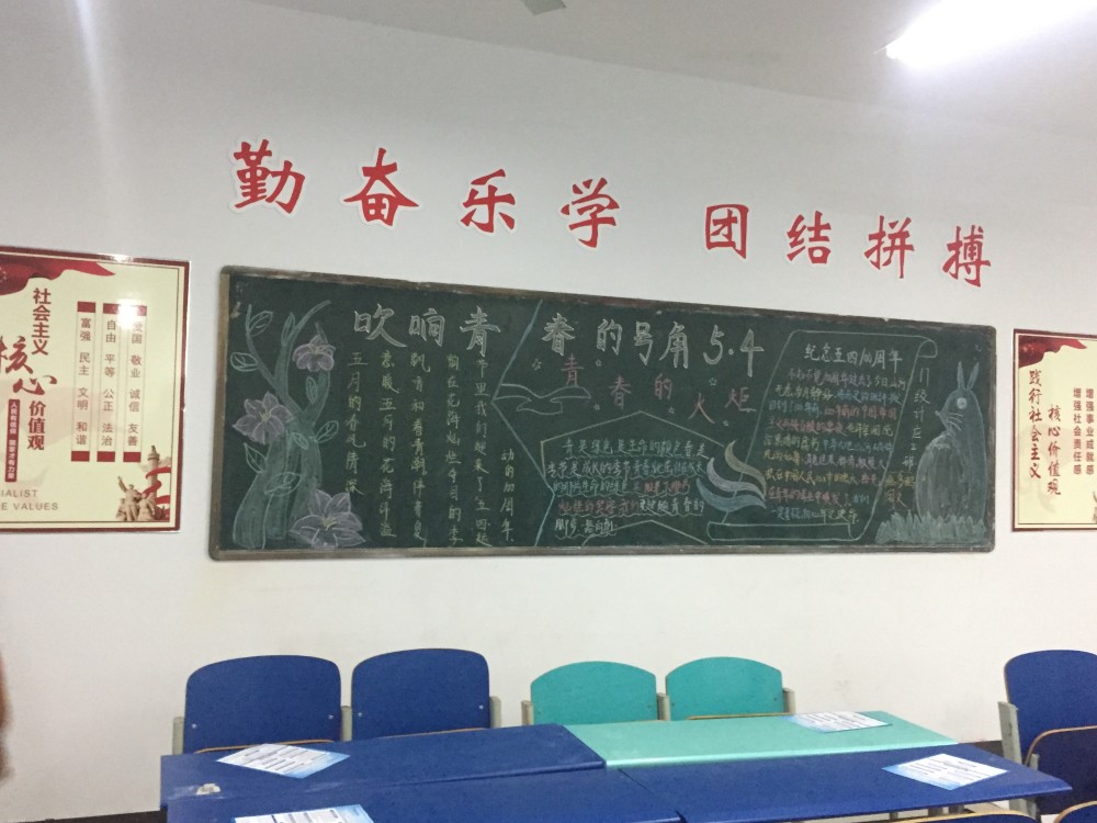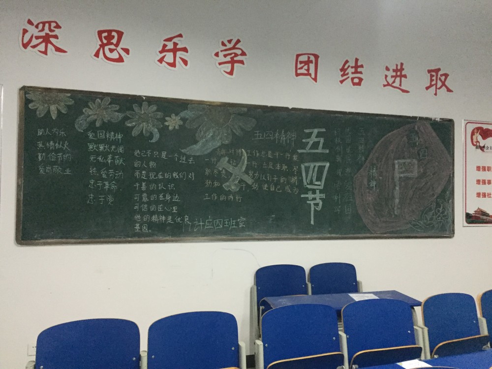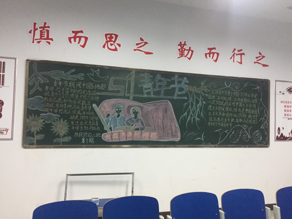 各个班级为了迎接五四青年节画的黑板报,用不同的黑板报格式展现了每个班级的风采。通过黑板报的宣传相信同学们能很好的学习和感悟五四青年的青年风采,激发出奋发向上英勇无畏的精神,为做开拓新时代的先锋播撒热血,充分展现我们青年一代的激情。 (撰稿:章晓智 摄影:刘安新 审核:吴访)