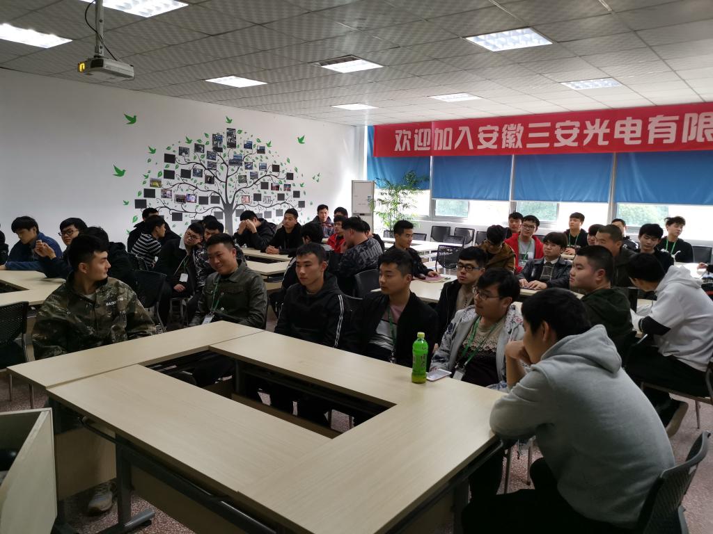 3月23日上午,信电系主任刘国华、马艳梅老师、蒋军老师前往芜湖三安光电,走访17级电气自动化技术专业“工学交替”的员工。