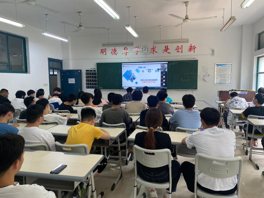 为助力实习生更充分、更高质量实习就业,在疫情常态防控的背景下,5月26日下午16:30,bwin官网在1203教室举办芜湖三安光电股份有限公司线上专场招聘会,为20级和21级两年制即将顶岗实习的员工推荐优秀企业。20级电气自动化技术专业、21电气自动化技术两年制的同学参加了招聘会。【撰稿、摄影、发布:尹楠 审核:吴访】