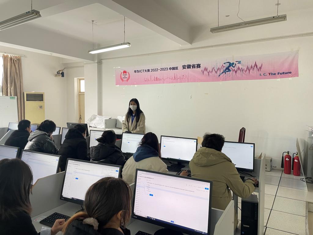 经过近两个月的准备,2022年12月03日,bwin官网大数据技术专业与计算机应用技术专业的23名同学参加了在bwin官网图书馆T601举办的华为ICT大赛2022-2023中国区安徽省实践赛—网络赛道。