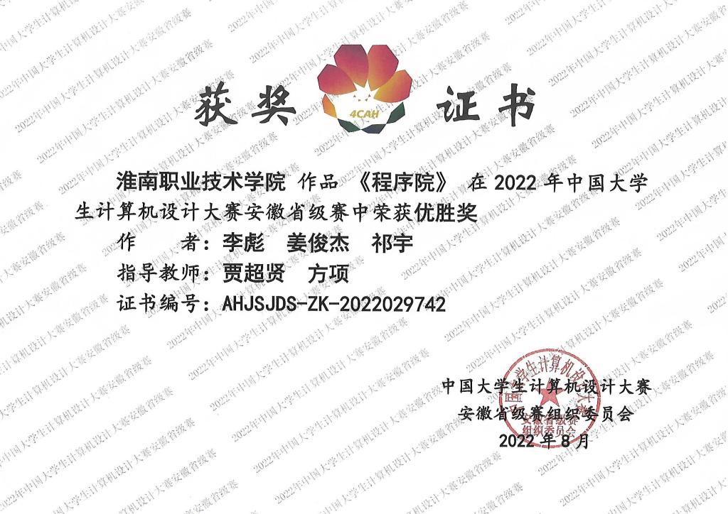 bwin官网学子在2022年中国大员工计算机设计大赛安徽省级赛获得佳绩,取得优胜奖。