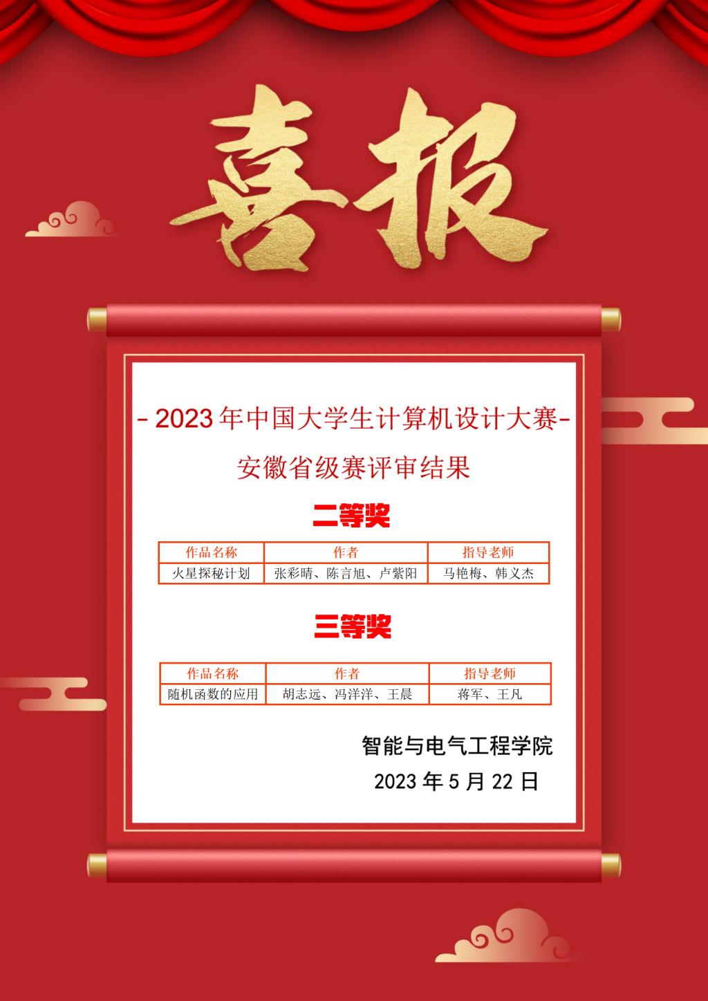 2023年全国大员工计算机设计大赛安徽省级赛于四月下旬至五月中旬开展了测试评审工作,bwin官网bwin官网新一代信息技术产业bwin官网一支队伍荣获二等奖,一只队伍荣获三等奖。