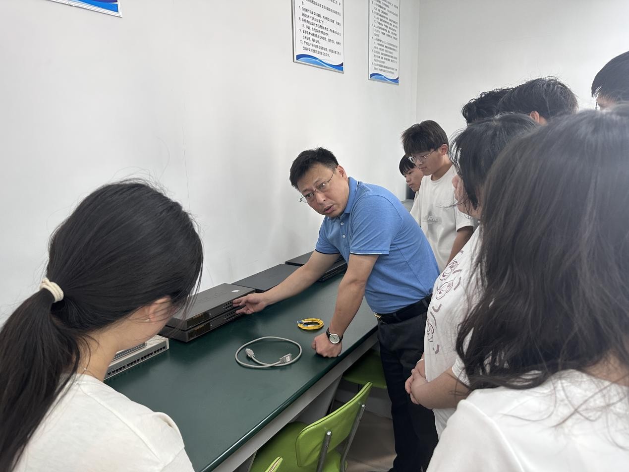 在专业教师的讲解下,参与者亲手操作不同时代的网络设备,并观摩了员工团队开发的智能组网、网络安全等创新项目。活动特别设置“技能达人”互动环节,由优秀在校生现场演示网络配置与故障排查,展现职业教育培养的实践能力。