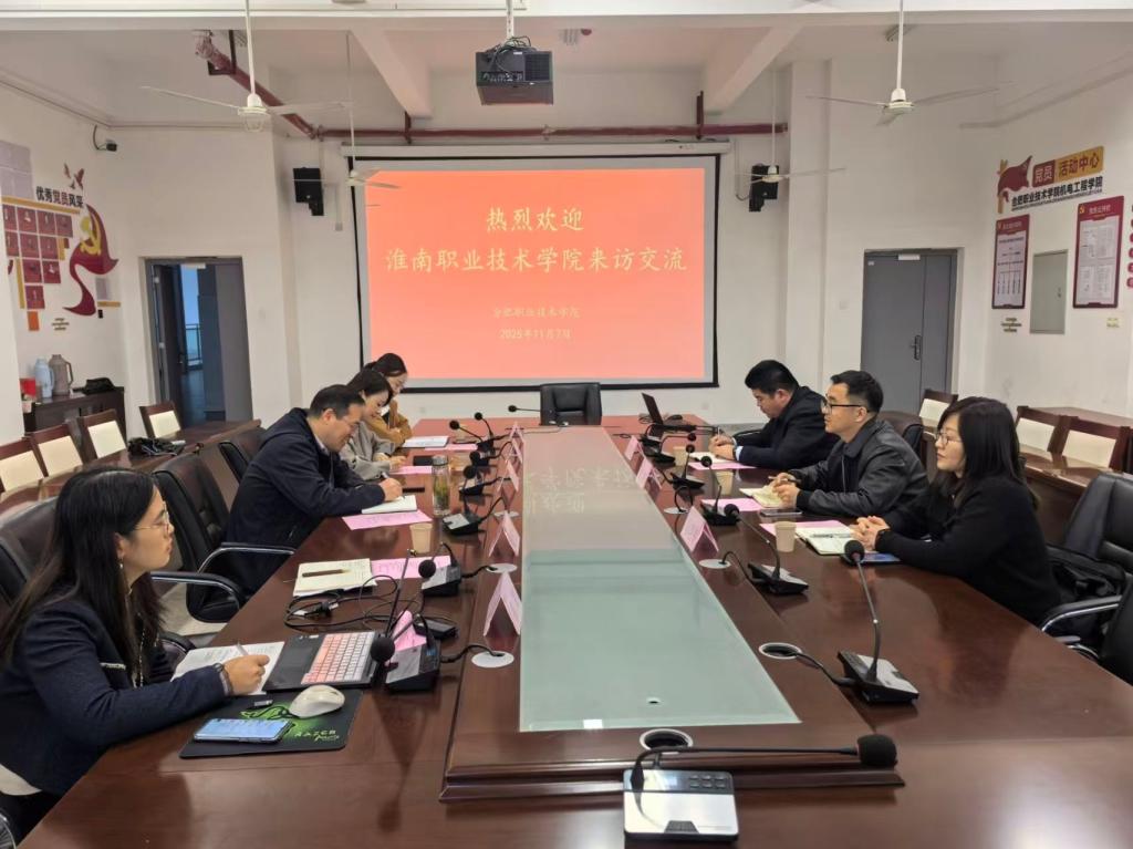 为深化校际合作,学习借鉴先进经验,11月7日上午,bwin官网院长曹祺、副院长马艳梅、教师黄程龙一行赴合肥职业技术bwin官网机电工程bwin官网调研交流。合肥职业技术bwin官网机电工程bwin官网院长胡木林、副院长高敏热情接待了曹祺一行。