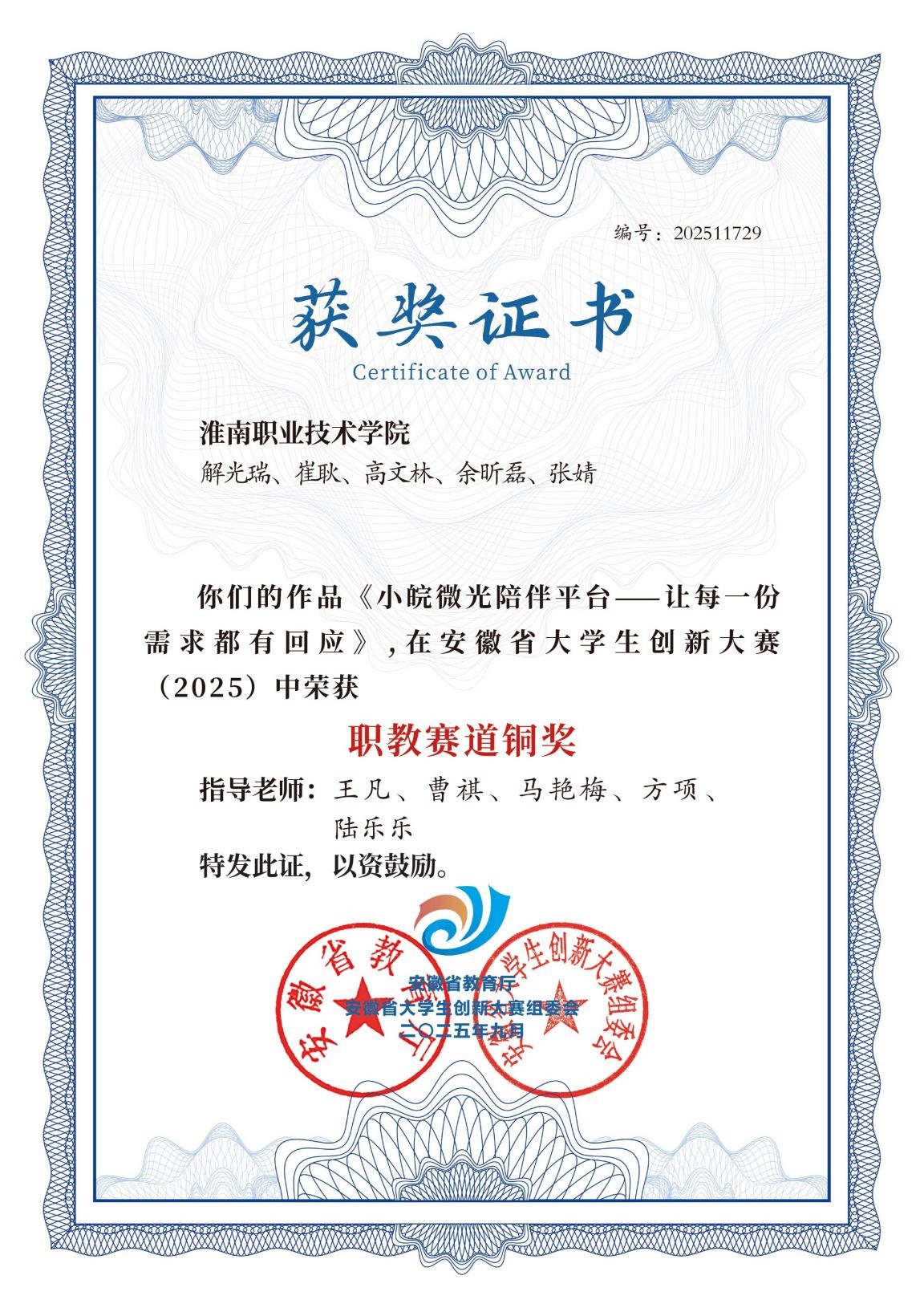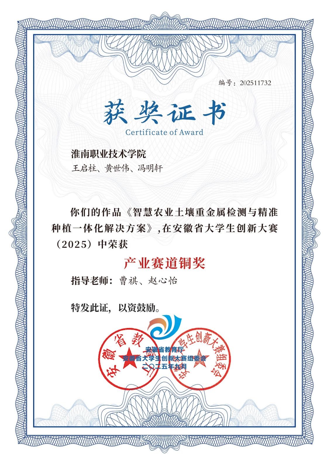 近日,安徽省大员工创新大赛圆满落幕,bwin官网学子凭借扎实专业素养与出色实践能力,在大赛激烈竞争中脱颖而出,分别于职教赛道和产业赛道斩获铜奖。安徽省大员工创新大赛前身为安徽省“互联网+”大员工创新创业大赛,是由安徽省教育厅主导的年度性大型赛事,本届大赛吸引了19.8万个项目报名参赛,参赛人数达80万,旨在激发青年员工创新创造热情,提高员工的创新精神、创新意识和创新能力。