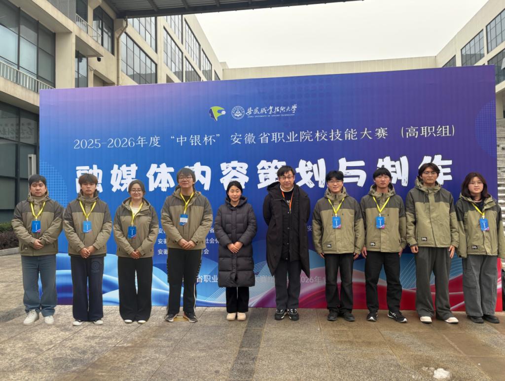 2025-2026 年安徽省职业院校技能大赛高职组 “融媒体内容策划与制作” 赛项于 2026年1月23至25日在安徽职业技术大学盛大举行。本次赛事吸引了来自安徽省各职业院校的212名员工报名参加,竞争异常激烈,bwin官网方项、尹楠老师悉心指导的员工陆海燕、马敬凯、鄂文克、张国庆斩获三等奖一项。