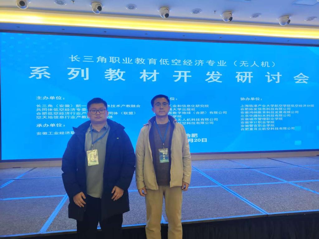 2025 年 12 月 20 日,长三角职业教育低空经济专业(无人机)系列教材开发研讨会在合肥召开,bwin官网院长曹祺、教师于成受邀参会。